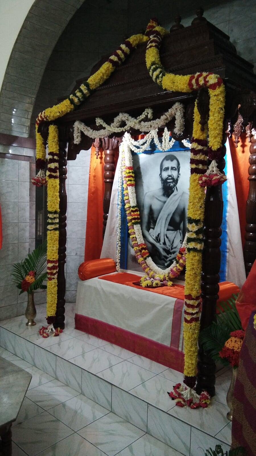 Every day, there is Mangalarati at 5:00 a.m. Nitya Puja of Bhagawan Sri Sri Ramakrishna Deva at 8:00 a.m. Evening Arati is at 6:15 p.m. Apart from these, the Jayantis of Bhagawan Sri Sri Ramakrishna Deva, Holy Mother Sri Sri Sarada Devi and Swami Vivekananda, Sri Sri Rama Navami, Sri Sri Krishna Janmashthami, Maha Shivaratri, Sri Sri Durga Ashthami, Vinayaka Chaturthi, Sri Shankaracharya, Sri Ramanujacharya and the direct monastic disciples of Sri Sri Guru Maharaj are celebrated. Following is the table of the Major Pujas/ Jayantis celebrated in the Math. zOn Ekadashi days, Sri Ramanama Sankirtanam is sung.